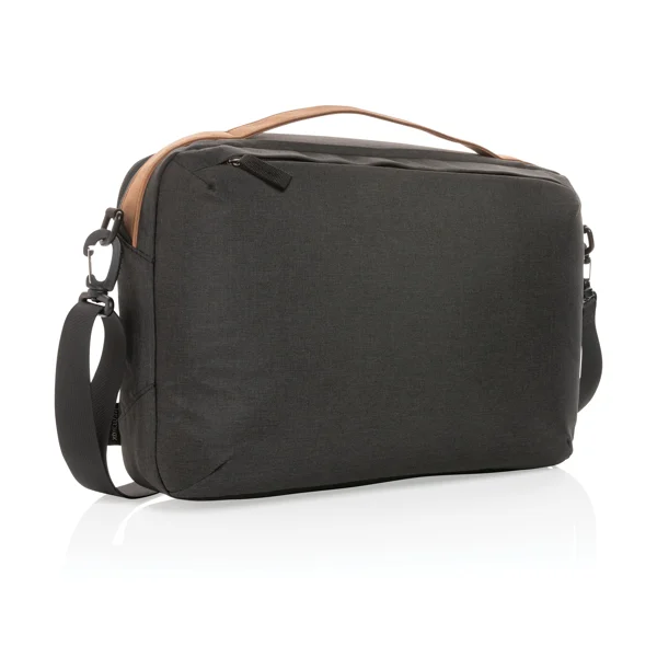 Our range includes a plethora of sustainable laptop bags made from materials such as recycled cotton, recycled canvas, vegan leather, and rPET – a fabric made from recycled plastic bottles and other post-consumer/industrial sources. Many of our laptop bags also feature an AWARE™ tracer, which validates the genuine use of recycled materials.