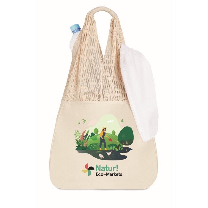 Made from 220 gsm cotton with breathable mesh panels and long carry handles, it offers plenty of space for beach or travel essentials.