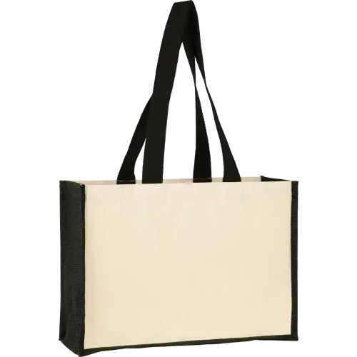 Make a statement with the Brookland shopper, featuring contrasting jute sides and bottom that give this bag its distinctive eye-catching look. Crafted from 10oz natural canvas with full gusseting all around, it offers maximum capacity while maintaining durability. Long cotton webbing handles provide comfortable carry on the shoulder, and its generous size makes it perfect for shopping, busy events or everyday essentials.