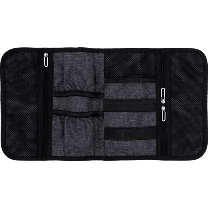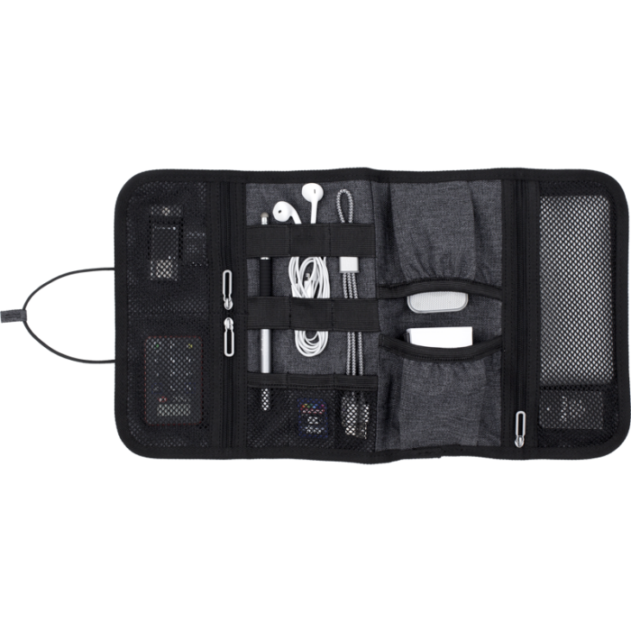 Inside, elastic loops, mesh pockets and open compartments provide flexible storage for chargers, cables, USBs, SD cards and adapters – making it an ideal branded giveaway for travel, technology and corporate events.