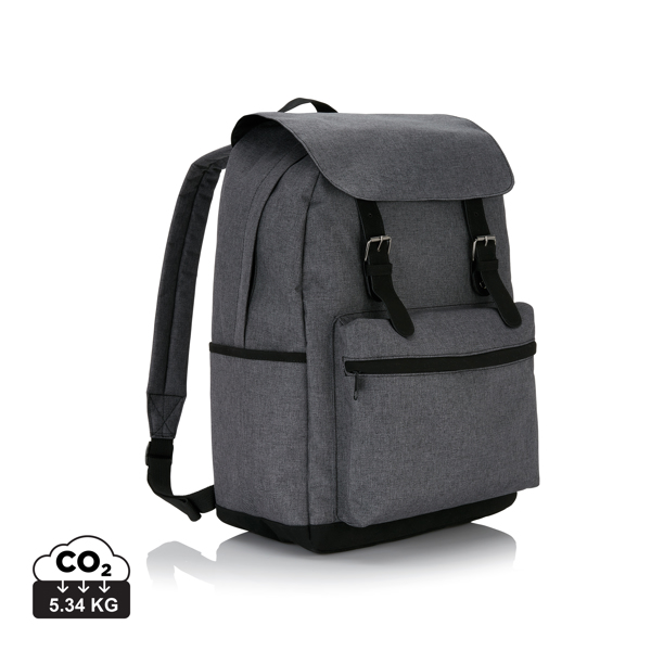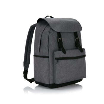 This 600D two tone polyester laptop backpack offers a classic look that’s perfect for the daily commute to school or work. Comes with large main compartment including a padded pocket for your 15.6” laptop. A zippered front pocket offers added storage for your earbuds and smartphone, camera, snacks, or other small items. PVC free.