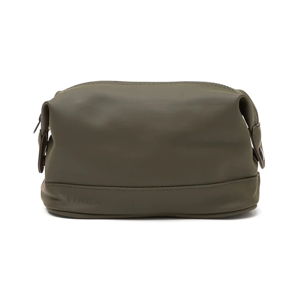 Made from water-repellent nubuck vegan leather, it keeps your essentials protected while travelling, with a secure zip closure for easy access.