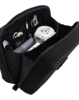 Made from recycled PET bottles, it combines the functionality of a toiletry bag, tech organiser and crossbody bag, with multiple pockets for personal care items or tech essentials.